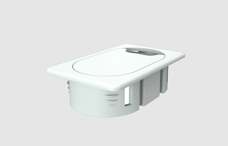 El Pasacables Rectangular de Byrne permite el accesor de energía, comunicación y cables de datos a través de tu superficie de trabajo. Puede ser utilizado sólo o adaptado a cualquiera de nuestros Centros de Energía, Voz/Datos RPC.