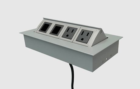 Retráctil y de construcción duradera, Mho es altamente funcional con una fluida puerta de un toque, que permanecerá abierta mientras se utilice. Mho ofrece una solución completamente escalable (de 4 puertos) con una gran variedad de configuraciones eléctricas y de datos.