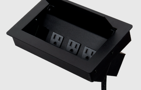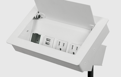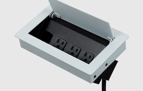 Naica es un accesorio eléctrico fijo con perforación que permite mantener una superficie limpia y ordenada mientras está en uso. Cuenta con estructura metálica y opciones de 4 y 6 puertos de energía eléctrica, usb de carga y datos. Los puertos eléctricos se mantienen fijos y ocultos y la cubierta manual permite el acceso estando abierta o cerrada.